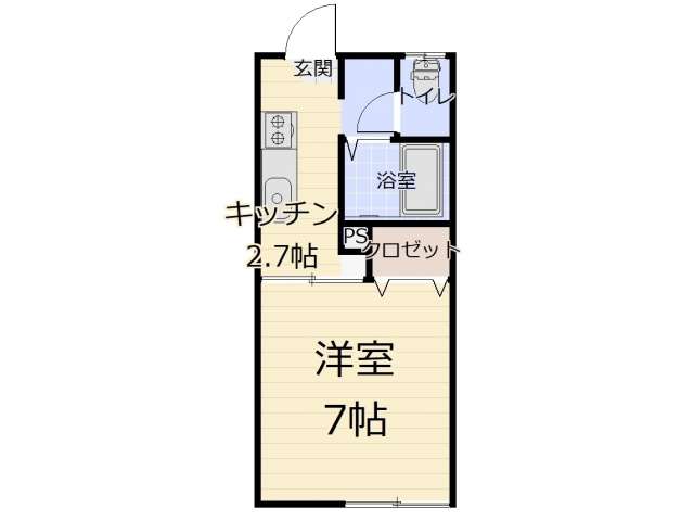 | 詳細間取 | 1K (洋7帖×1、キッチン2.7帖) | ||